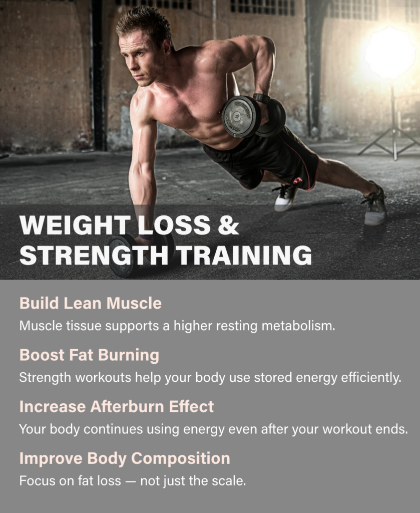 When many people think about weight loss, they picture long cardio sessions. While cardiovascular exercise has benefits, strength training plays a powerful role in supporting sustainable fat loss and metabolic health.